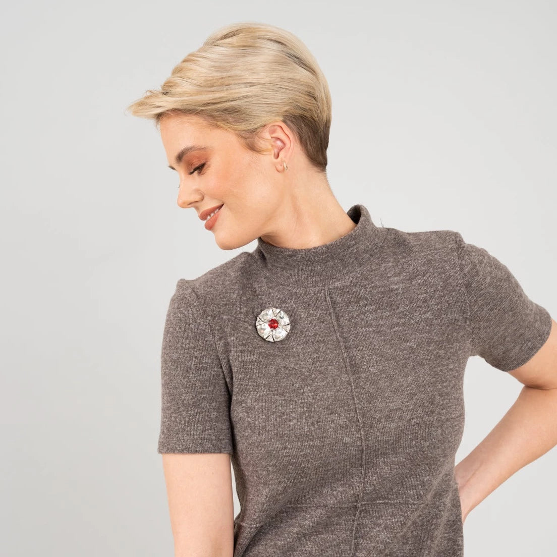 Die funkelnden Kristalle in leuchtendem Rot, Gold, Grün oder Blau werden von einer zarten Fassung aus Silber umschmeichelt und lassen sich durch einen innovativen Magnetverschluss an jeder Kleidung befestigen. Tragen Sie das Schmuckstück klassisch an Ihrem Kaschmir Pullover oder etwas gewagter an Schuhen, Mützen, Taschen oder Schals. Egal, wie Sie das Statement-Piece tragen – We love your style!